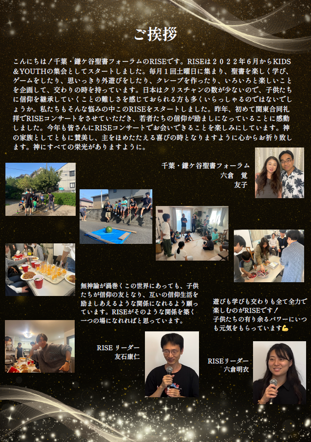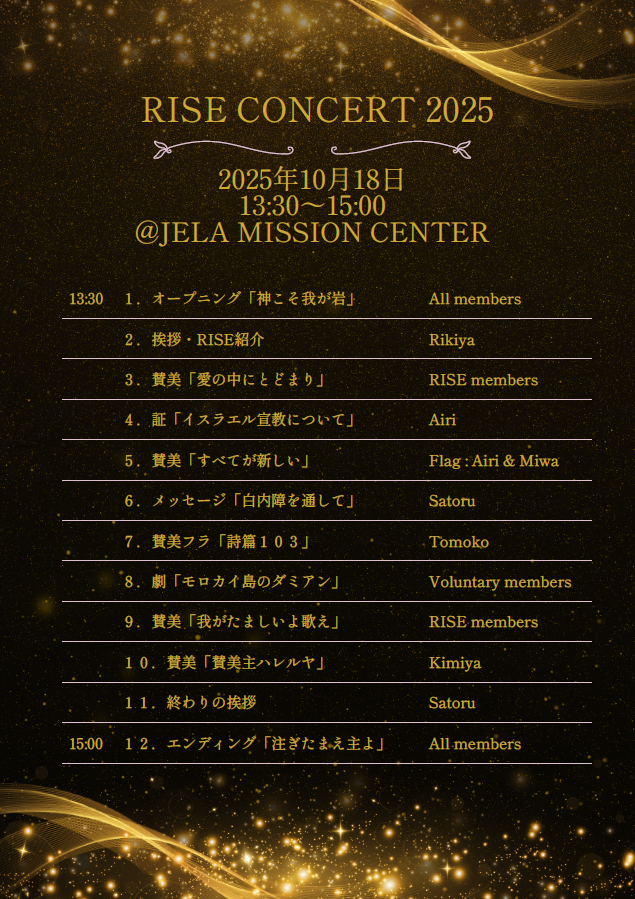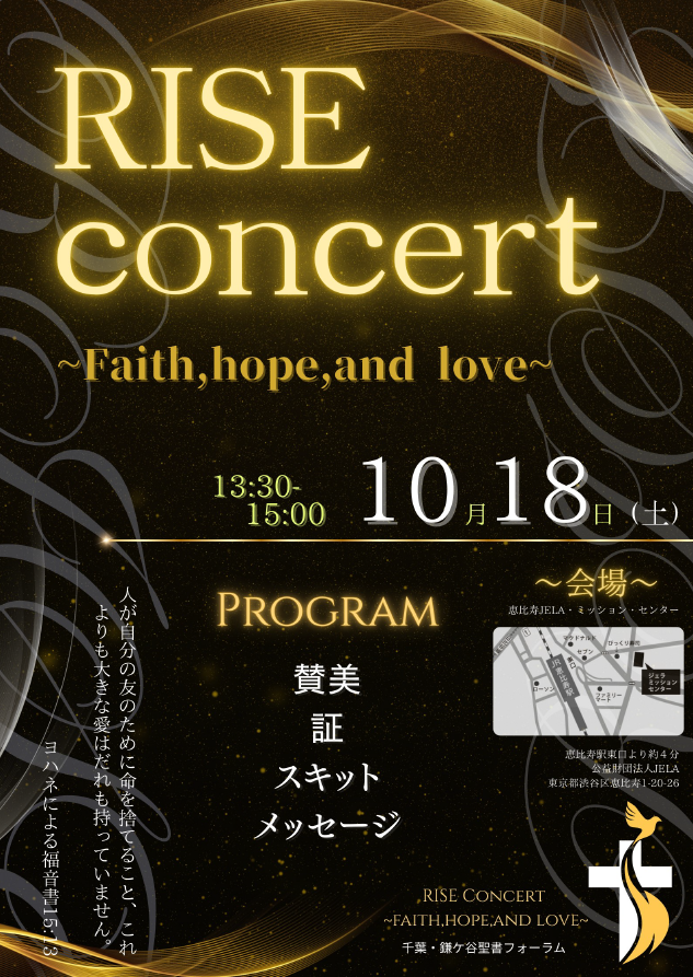 10/18(土)には関東地区聖書フォーラム合同礼拝で、【RISE】コンサート